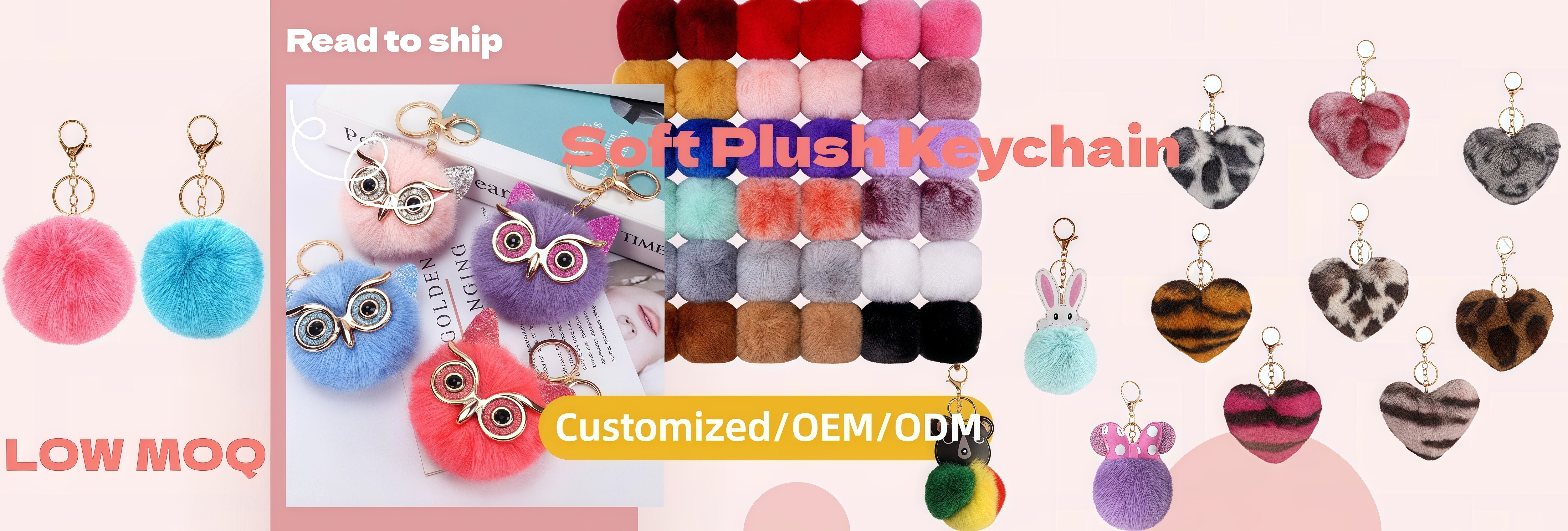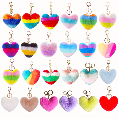 공장 직매 봉제인형 플러시 푹신한 모양 표범 사랑 폼폼 인쇄 스노우 모피 하트 폼폼 키 체인 10 팩