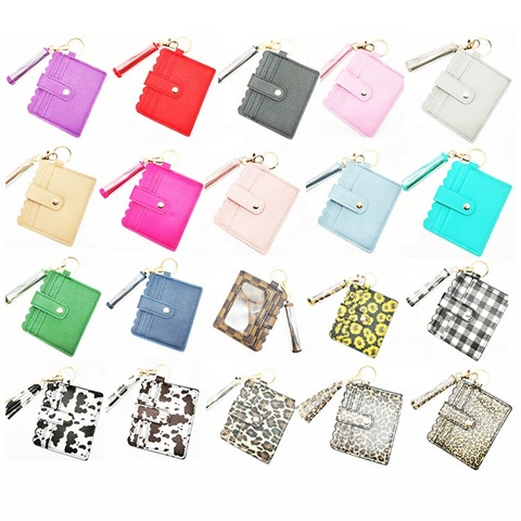 Pu 가죽 표범 인쇄 카드 홀더 가방 키 체인 학생 버스 ID 카드 홀더 술