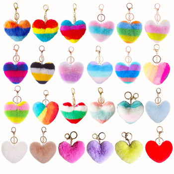 공장 직매 봉제인형 플러시 푹신한 모양 표범 사랑 폼폼 인쇄 스노우 모피 하트 폼폼 키 체인 10 팩