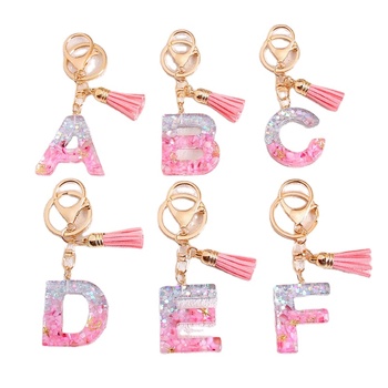 พวงกุญแจอักษรชื่อตัวอักษรเริ่มต้นห่วงโซ่กุญแจอะคริลิคคริสตัลเคลือบแวววาว